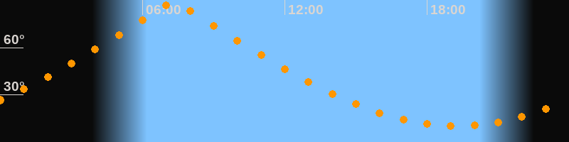 | Höchster Stand (Kulmination) | 07:17 Uhr (h = 88,8°) |