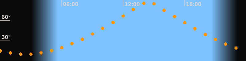 | Höchster Stand (Kulmination) | 14:27 Uhr (h = 88,8°) |