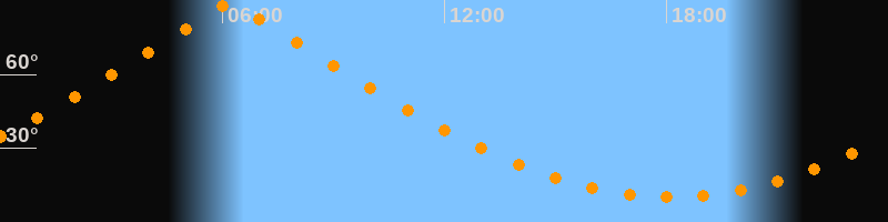 | Höchster Stand (Kulmination) | 06:11 Uhr (h = 88,8°) |