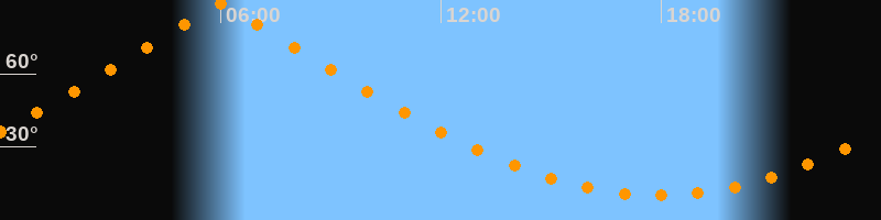 | Höchster Stand (Kulmination) | 06:00 Uhr (h = 88,8°) |