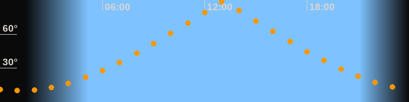 | Höchster Stand (Kulmination) | 13:05 Uhr (h = 88,8°) |