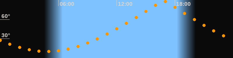 | Höchster Stand (Kulmination) | 16:49 Uhr (h = 88,8°) |