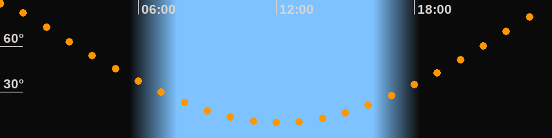 | Höchster Stand (Kulmination) | 00:07 Uhr (h = 88,8°) |