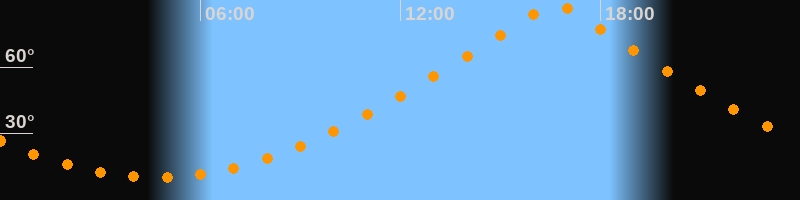 | Höchster Stand (Kulmination) | 16:38 Uhr (h = 88,8°) |