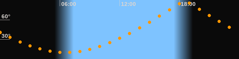 | Höchster Stand (Kulmination) | 18:33 Uhr (h = 88,8°) |