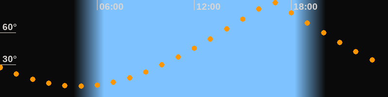| Höchster Stand (Kulmination) | 16:48 Uhr (h = 88,8°) |