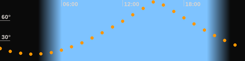 | Höchster Stand (Kulmination) | 15:15 Uhr (h = 88,8°) |