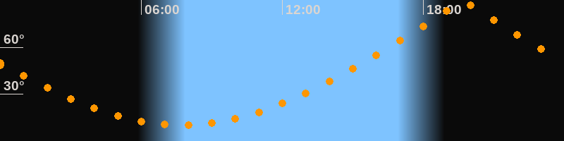 | Höchster Stand (Kulmination) | 19:42 Uhr (h = 88,8°) |