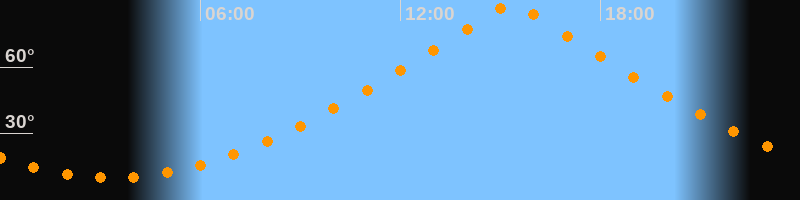 | Höchster Stand (Kulmination) | 15:20 Uhr (h = 88,8°) |
