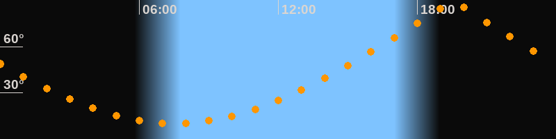 | Höchster Stand (Kulmination) | 19:31 Uhr (h = 88,8°) |