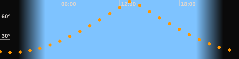 | Höchster Stand (Kulmination) | 13:10 Uhr (h = 88,8°) |