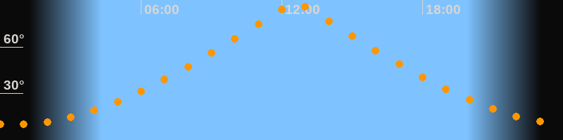 | Höchster Stand (Kulmination) | 12:34 Uhr (h = 88,8°) |