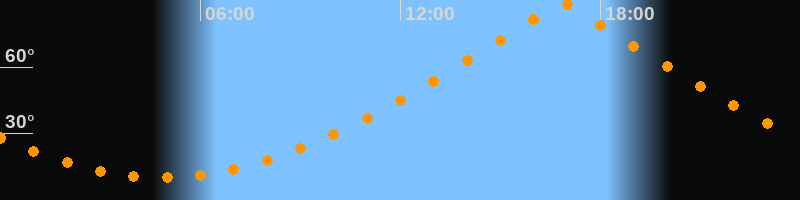 | Höchster Stand (Kulmination) | 16:51 Uhr (h = 88,8°) |
