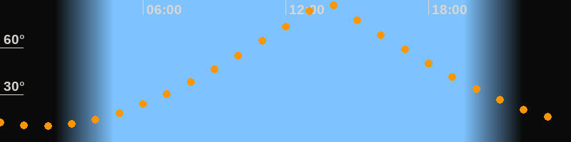 | Höchster Stand (Kulmination) | 13:42 Uhr (h = 88,8°) |