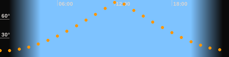 | Höchster Stand (Kulmination) | 12:20 Uhr (h = 88,8°) |