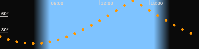 | Höchster Stand (Kulmination) | 16:01 Uhr (h = 88,8°) |