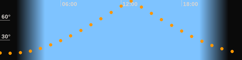| Höchster Stand (Kulmination) | 12:56 Uhr (h = 88,8°) |