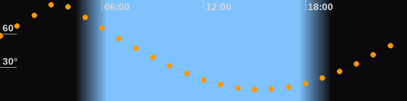 | Höchster Stand (Kulmination) | 03:23 Uhr (h = 88,8°) |