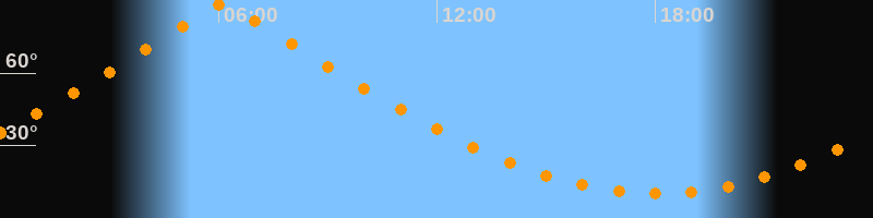 | Höchster Stand (Kulmination) | 06:06 Uhr (h = 88,8°) |