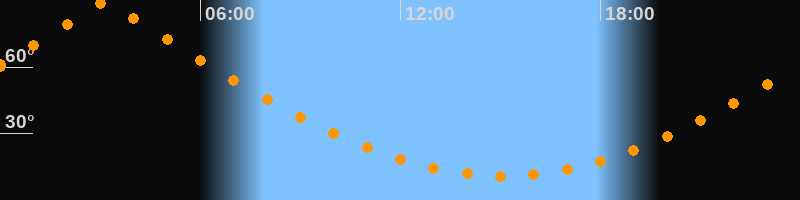 | Höchster Stand (Kulmination) | 03:08 Uhr (h = 89,5°) |