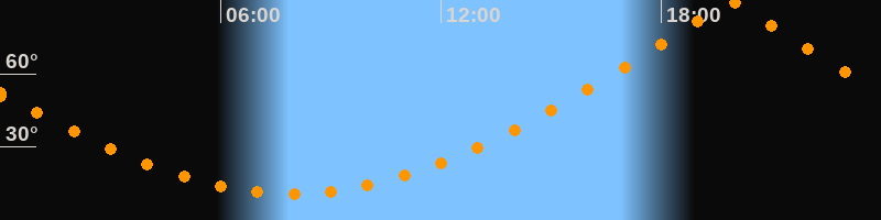 | Höchster Stand (Kulmination) | 19:54 Uhr (h = 89,5°) |