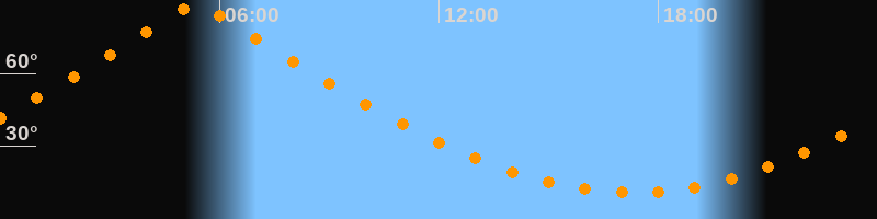 | Höchster Stand (Kulmination) | 05:21 Uhr (h = 89,5°) |