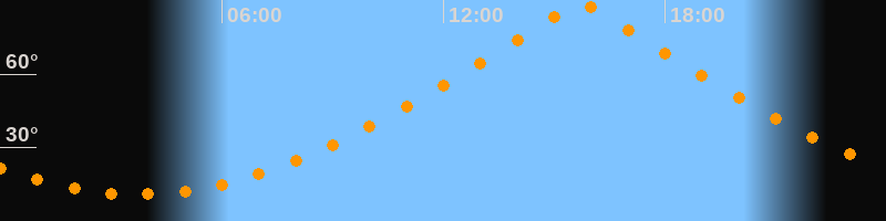 | Höchster Stand (Kulmination) | 15:43 Uhr (h = 89,5°) |