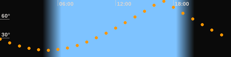 | Höchster Stand (Kulmination) | 16:50 Uhr (h = 89,5°) |