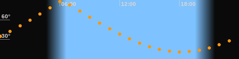 | Höchster Stand (Kulmination) | 06:14 Uhr (h = 89,5°) |