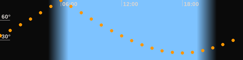 | Höchster Stand (Kulmination) | 05:59 Uhr (h = 89,5°) |