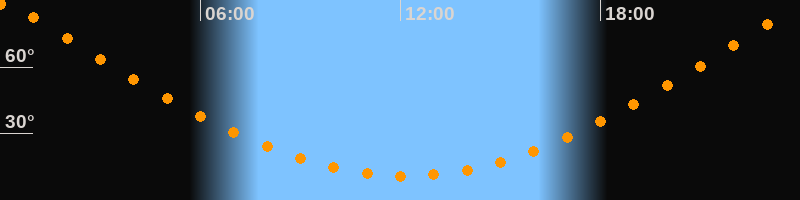 | Höchster Stand (Kulmination) | 00:08 Uhr (h = 89,5°) |
