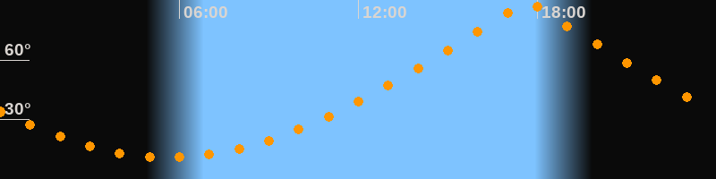 | Höchster Stand (Kulmination) | 17:39 Uhr (h = 89,5°) |