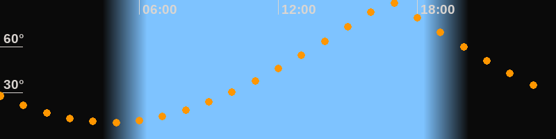 | Höchster Stand (Kulmination) | 16:47 Uhr (h = 89,5°) |