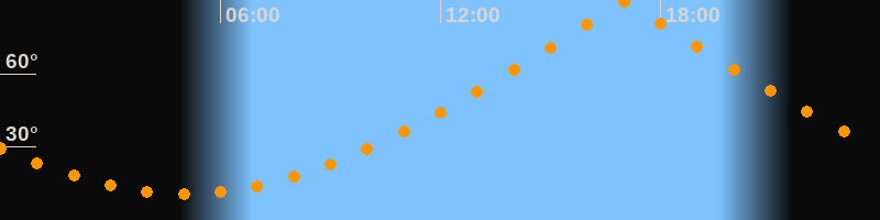 | Höchster Stand (Kulmination) | 17:00 Uhr (h = 89,5°) |