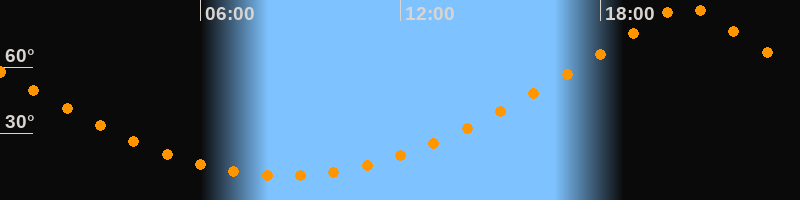 | Höchster Stand (Kulmination) | 20:33 Uhr (h = 89,5°) |