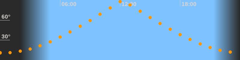 | Höchster Stand (Kulmination) | 12:14 Uhr (h = 89,5°) |