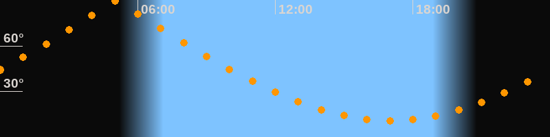 | Höchster Stand (Kulmination) | 05:02 Uhr (h = 89,5°) |