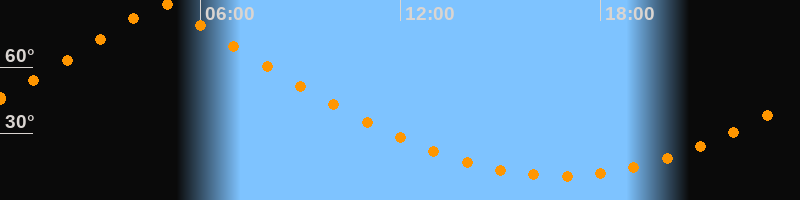 | Höchster Stand (Kulmination) | 04:50 Uhr (h = 89,5°) |