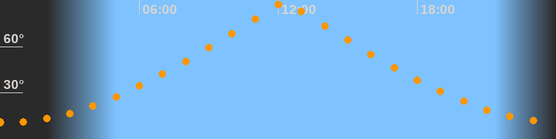 | Höchster Stand (Kulmination) | 12:15 Uhr (h = 89,5°) |