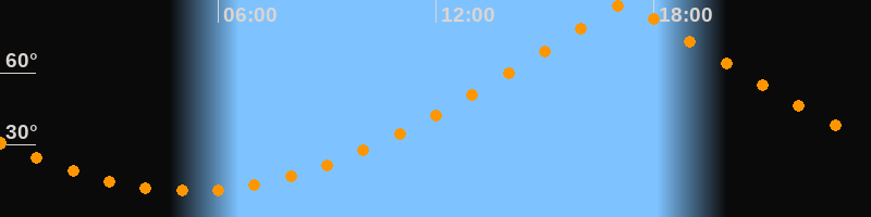 | Höchster Stand (Kulmination) | 17:13 Uhr (h = 89,5°) |