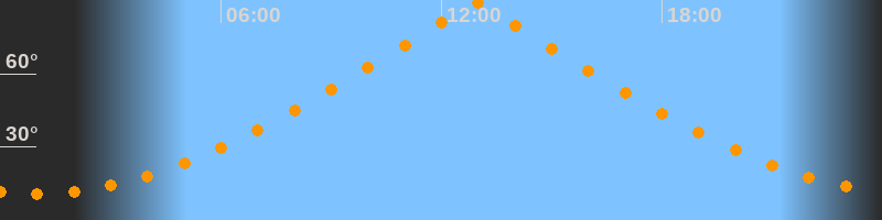 | Höchster Stand (Kulmination) | 12:55 Uhr (h = 89,5°) |