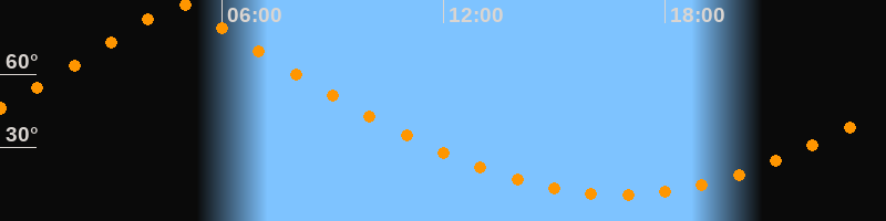 | Höchster Stand (Kulmination) | 04:48 Uhr (h = 89,5°) |