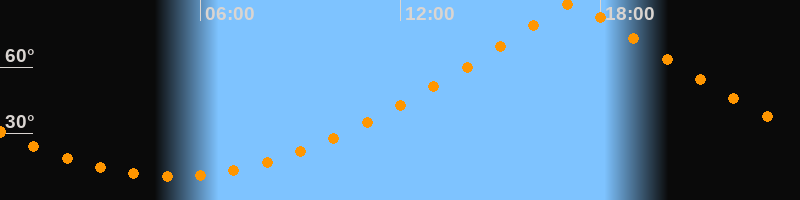 | Höchster Stand (Kulmination) | 17:11 Uhr (h = 89,5°) |