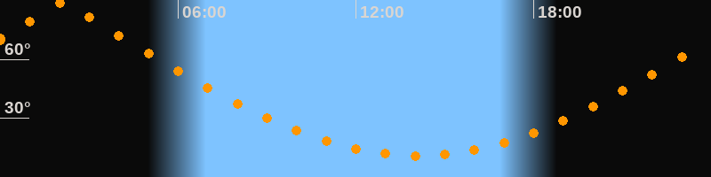 | Höchster Stand (Kulmination) | 02:07 Uhr (h = 89,5°) |