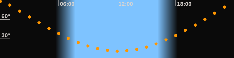 | Höchster Stand (Kulmination) | 00:09 Uhr (h = 89,5°) |