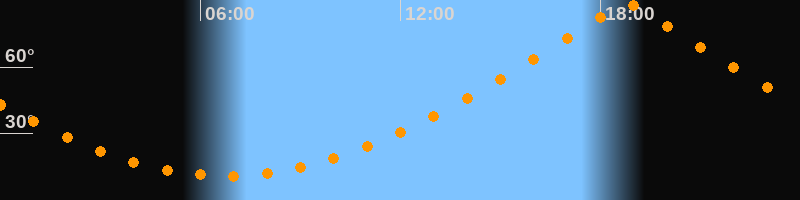 | Höchster Stand (Kulmination) | 18:47 Uhr (h = 89,5°) |