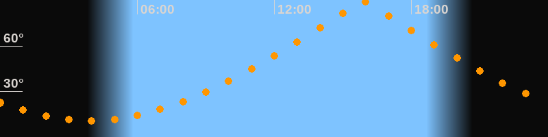 | Höchster Stand (Kulmination) | 15:54 Uhr (h = 89,5°) |