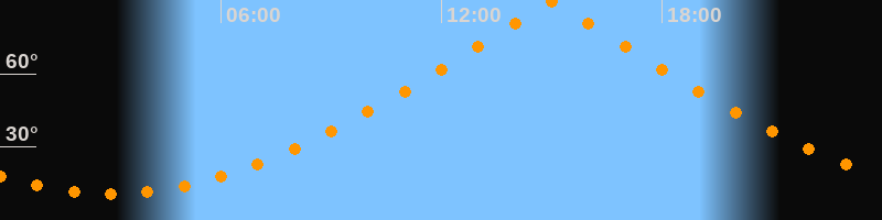 | Höchster Stand (Kulmination) | 14:59 Uhr (h = 89,5°) |