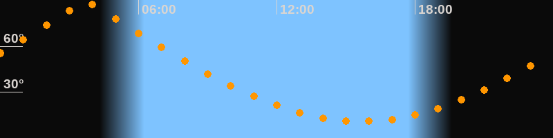 | Höchster Stand (Kulmination) | 03:43 Uhr (h = 89,5°) |