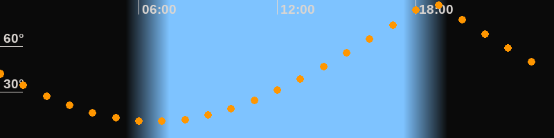 | Höchster Stand (Kulmination) | 18:40 Uhr (h = 89,5°) |